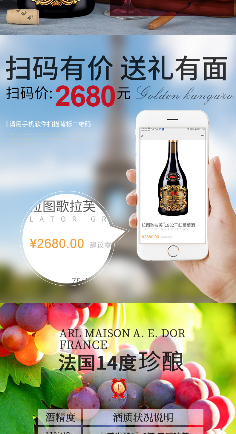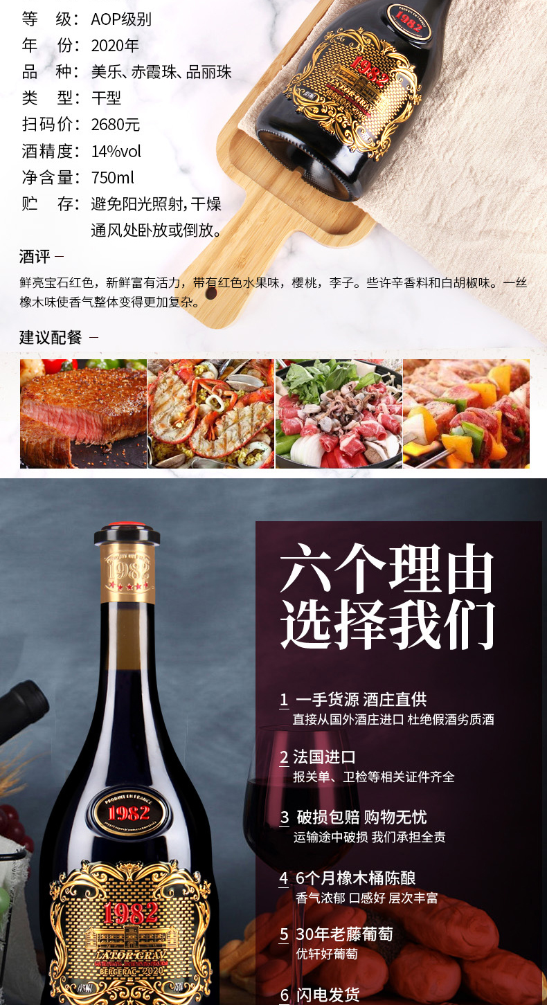 【法国】拉图歌拉芙1982干红葡萄酒14%vol 进口红酒750ml