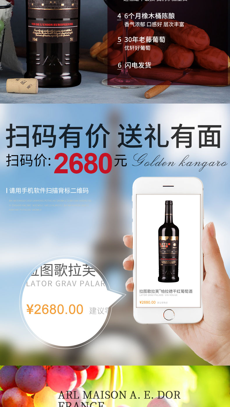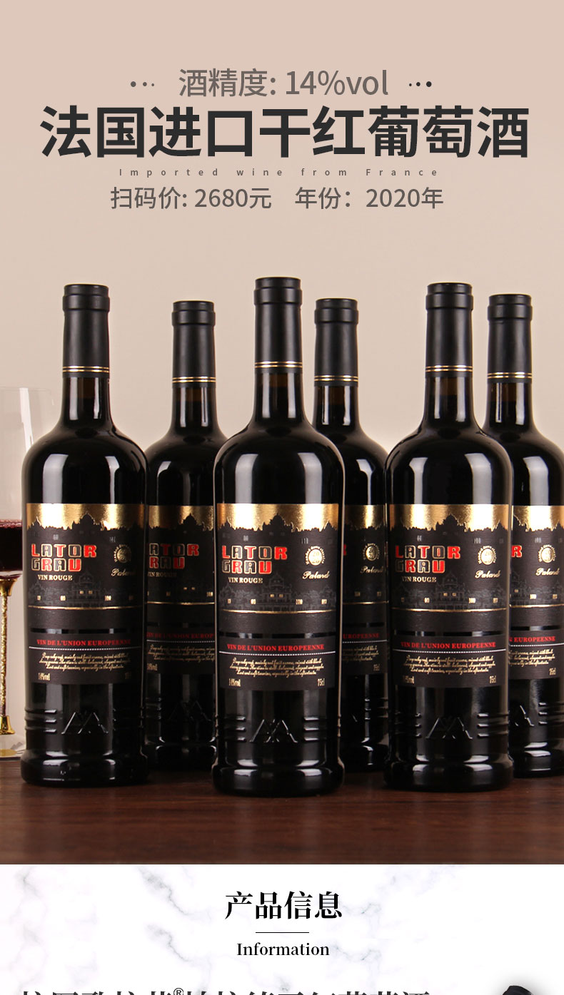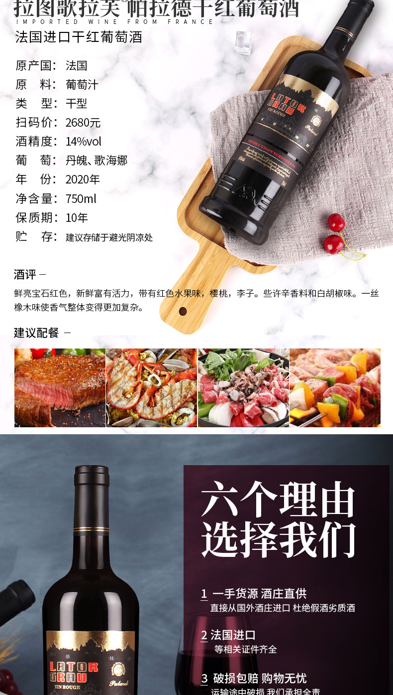 【法国】拉图歌拉芙帕拉德干红葡萄酒14%vol 进口红酒750ml*2